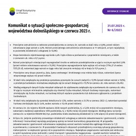 Komunikat o sytuacji społeczno-gospodarczej województwa dolnośląskiego w czerwcu 2023 r.