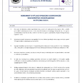 Komunikat o sytuacji społeczno-gospodarczej województwa dolnośląskiego w styczniu 2015 r.