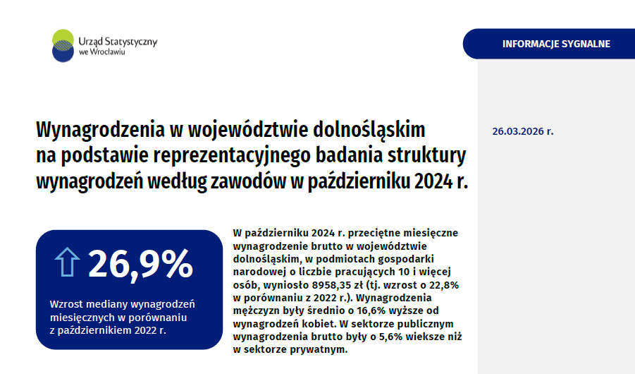 Wynagrodzenia w województwie dolnośląskim na podstawie reprezentacyjnego badania struktury wynagrodzeń według zawodów w październiku 2024 r.